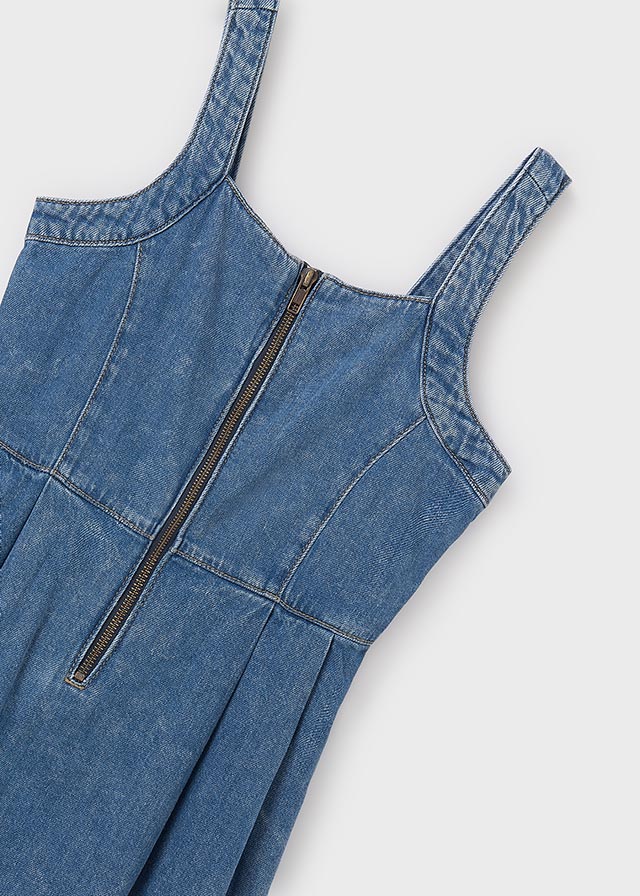 This Mayoral girls’ denim dress is a versatile summer essential with a stylish, casual look. Featuring wide straps and a pleated skirt, it offers comfort with a flattering fit. The back zipper fastening adds practicality while keeping the design modern. Perfect for everyday wear, holidays, or layering with a cardigan for cooler days.
