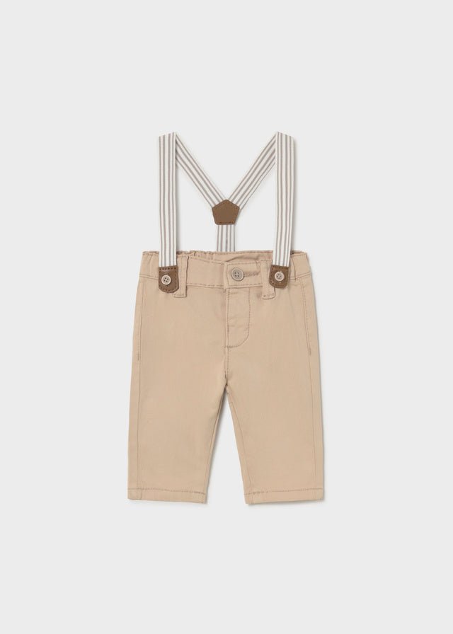 Newborn Boy Beige Long Trousers With Suspenders