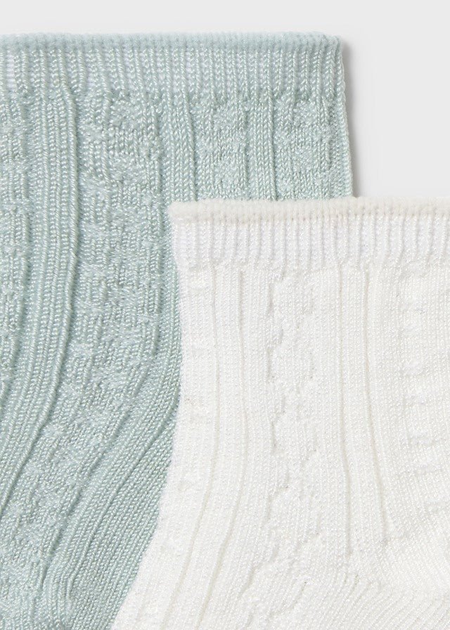 Classic Mayoral newborn boy dressy socks set designed to complete special occasion or everyday outfits with style. Featuring soft ribbed knit with subtle textured detailing, these comfortable cotton-rich socks provide a snug fit while keeping little feet cosy. Perfect for christening, weddings, or smart baby outfits.