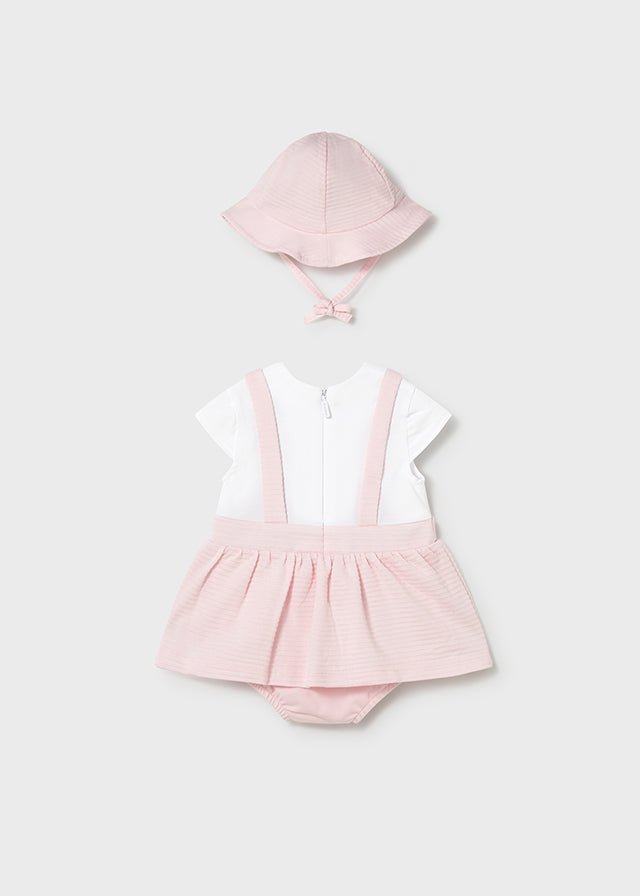 Newborn Girl Dungaree Skirt Romper with Hat