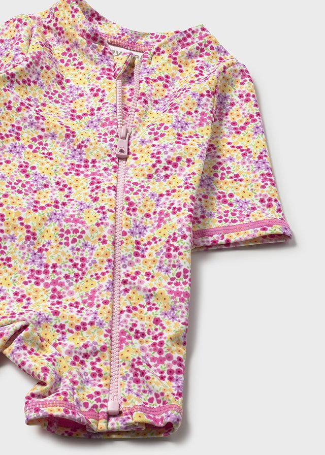 This Mayoral newborn girl swim set includes a floral swim sunsuit with a matching sun hat, designed to keep baby comfortable and protected during sunny beach or pool days. Made from soft, stretchy fabric, the sunsuit offers ease of movement while the long sleeves and hat provide extra sun coverage. A practical and adorable choice for summer holidays.