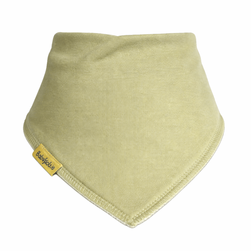 DribbleBoo bandana bib in a plain sage green shade. A soft and practical baby bib for everyday dribbling, teething, and feeding.