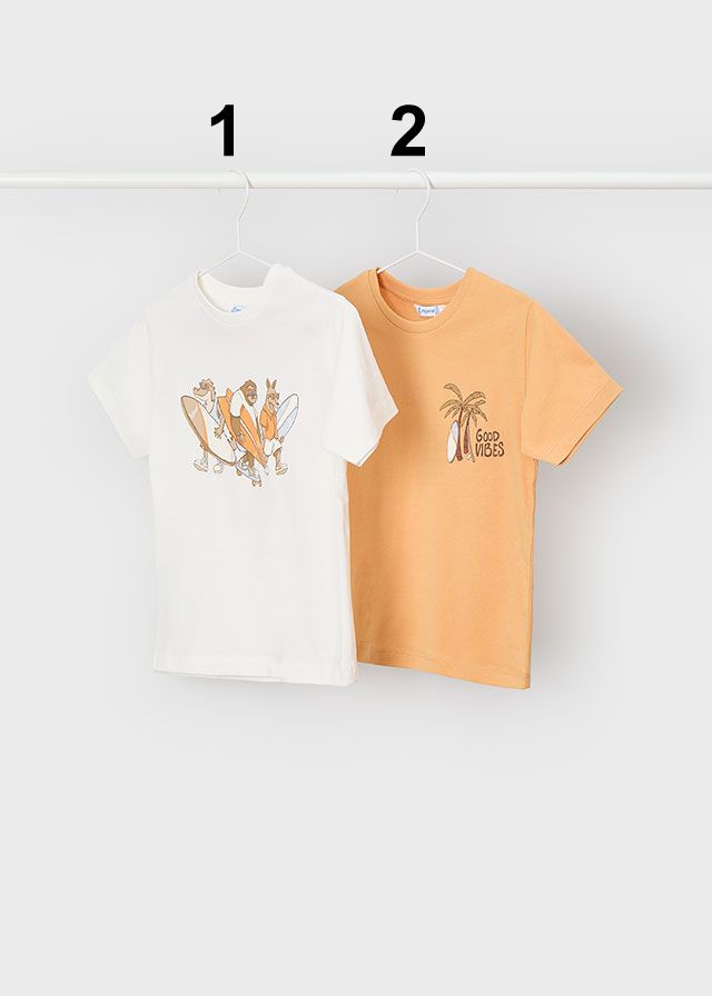 These Mayoral boys short sleeve t-shirts feature fun summer-inspired surf graphics, perfect for warm-weather outfits and everyday play. Please note, as clearly shown in the images, T-shirt 1 and T-shirt 2 are sold separately and are not sold as a set. Each design is available to purchase individually.