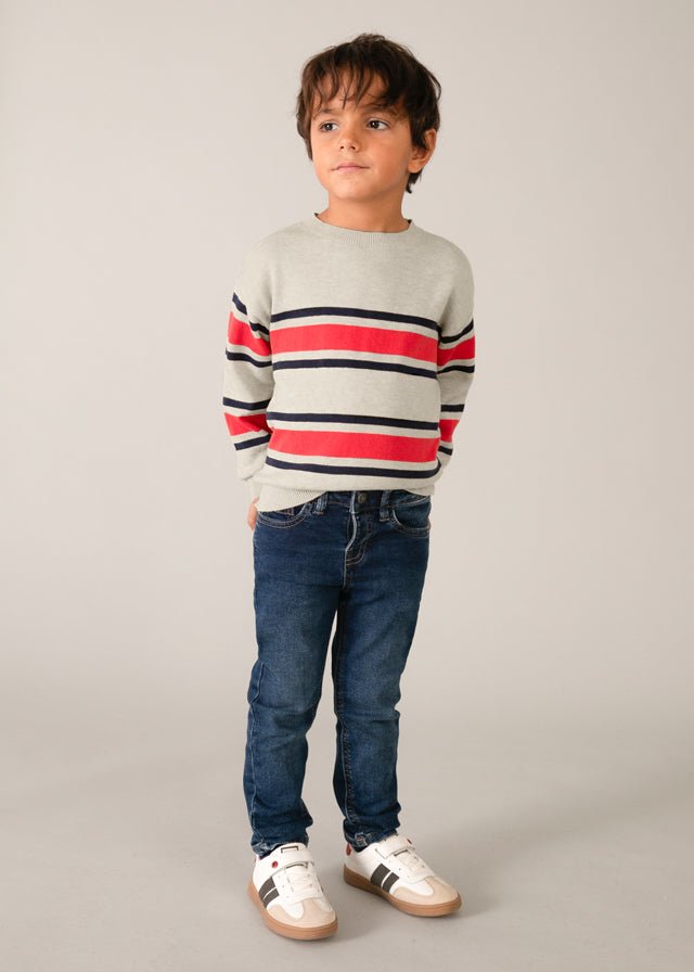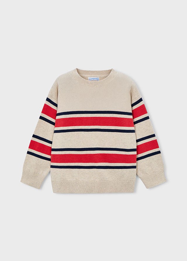 A classic boys’ striped jumper by Mayoral, designed for everyday comfort and easy styling. Made from soft cotton knit, it features timeless horizontal stripes and a relaxed fit, perfect for casual outfits or layering on cooler days.