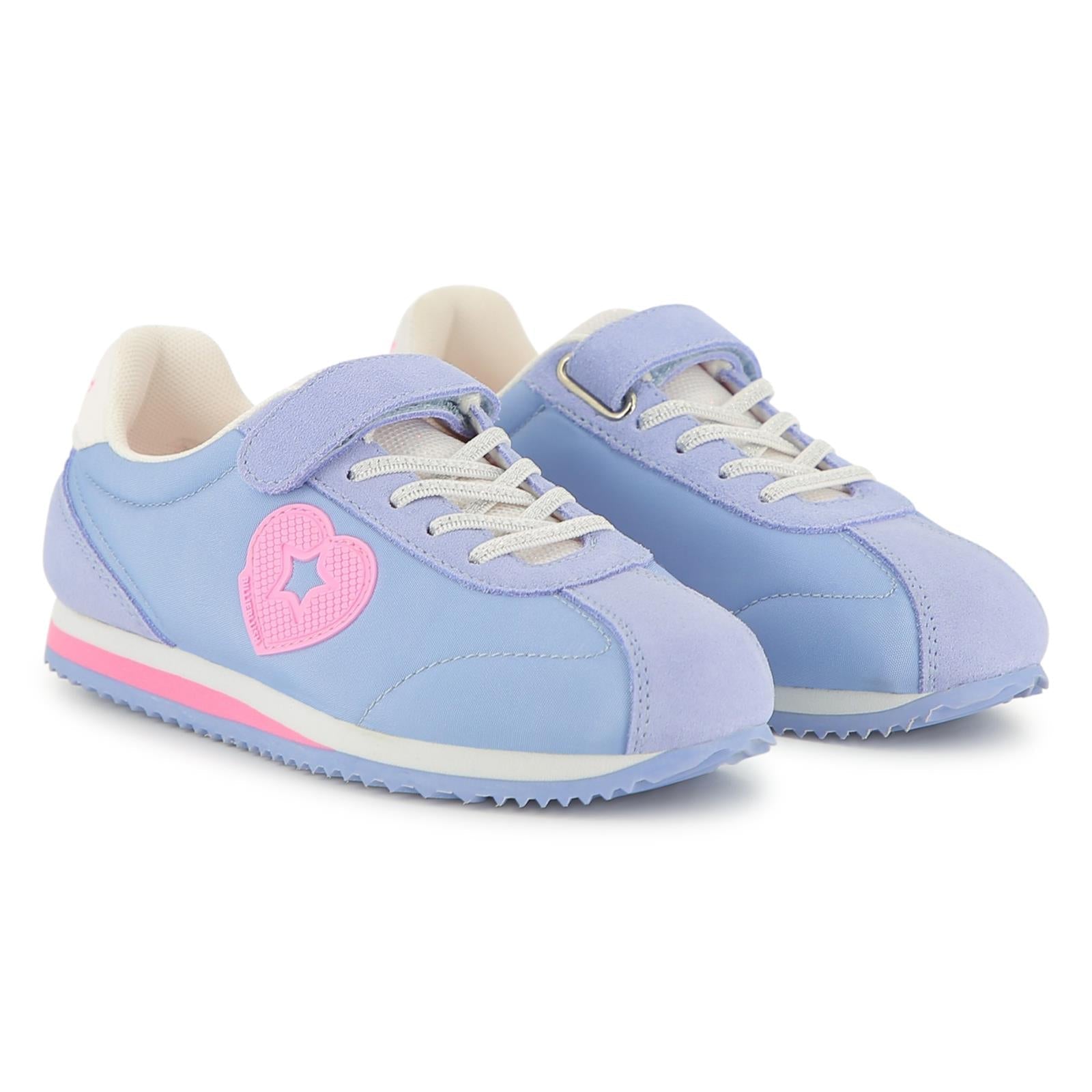 Add a pop of colour to her everyday look with these light purple trainers featuring a standout pink heart patch. Designed with a breathable mesh base and soft cow leather overlays, these trainers ensure all-day comfort. The elastic lace and hook-and-loop strap make them easy to slip on and secure for active days.