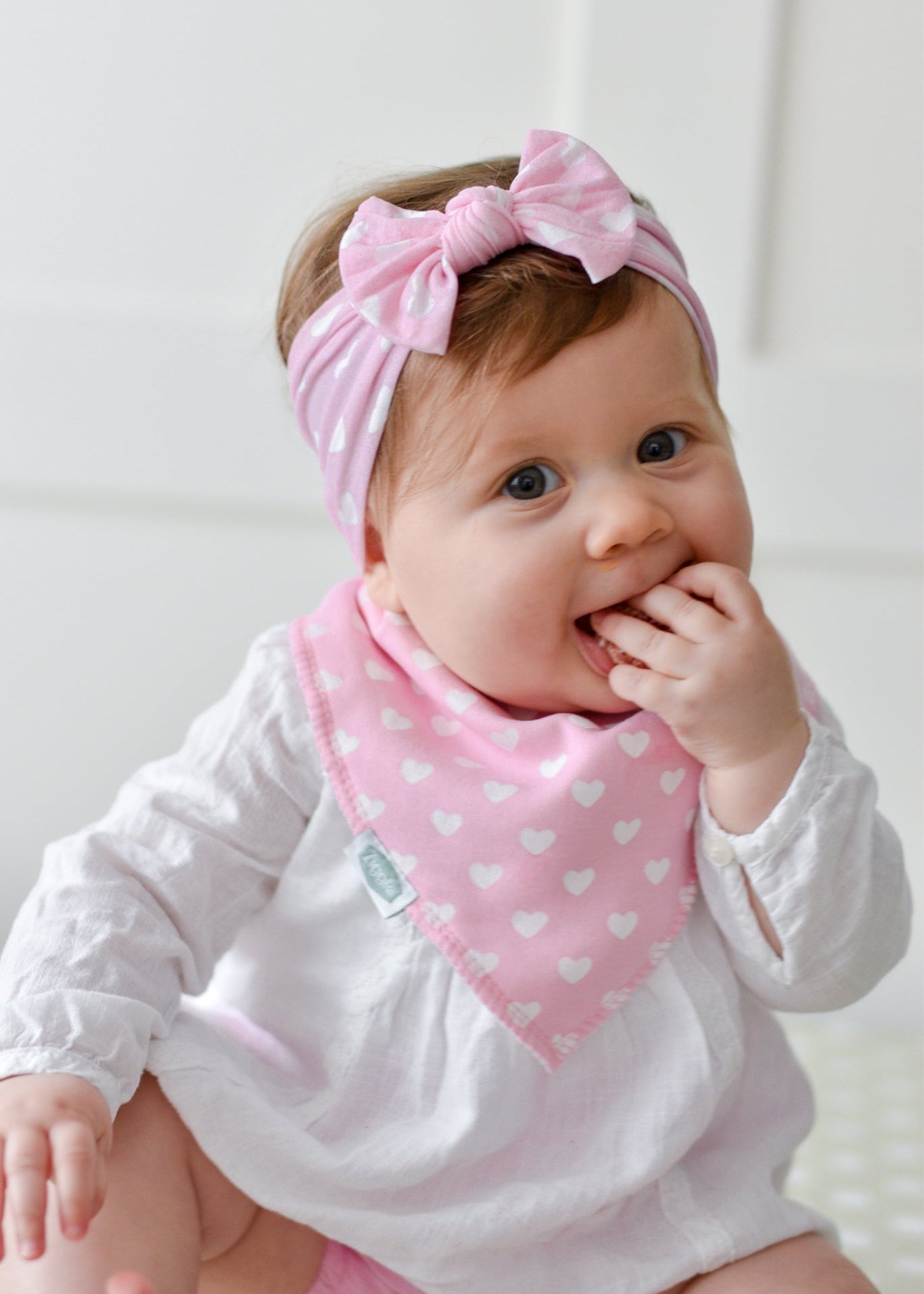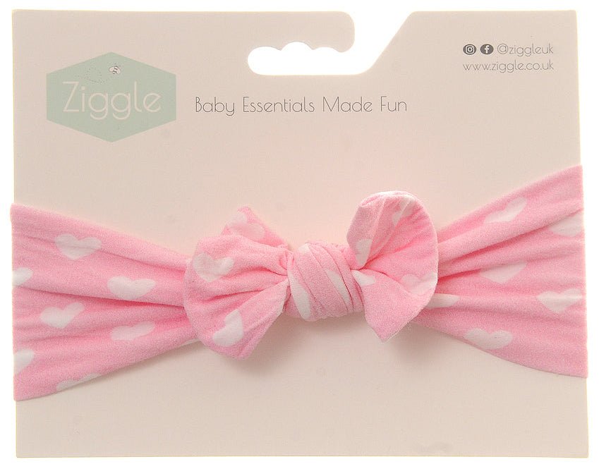 Pink & White Hearts Print Bow Headband