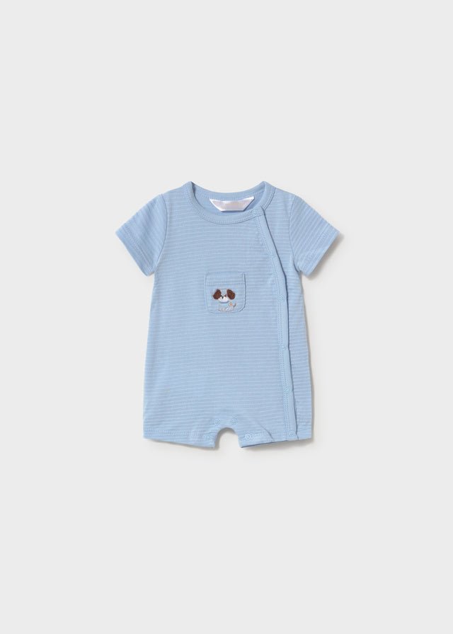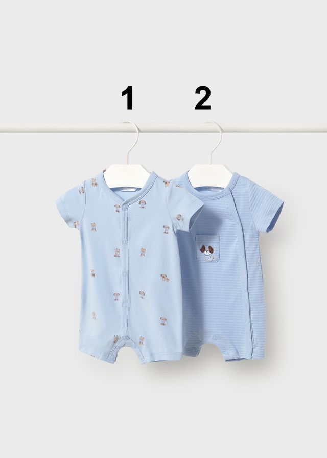 Soft and breathable newborn boy short romper by Mayoral, designed for everyday comfort. Crafted in gentle cotton fabrics, this summer romper features a practical side snap fastening and a cute dog motif. The two styles shown (1 and 2) are sold separately, allowing you to choose your preferred design.