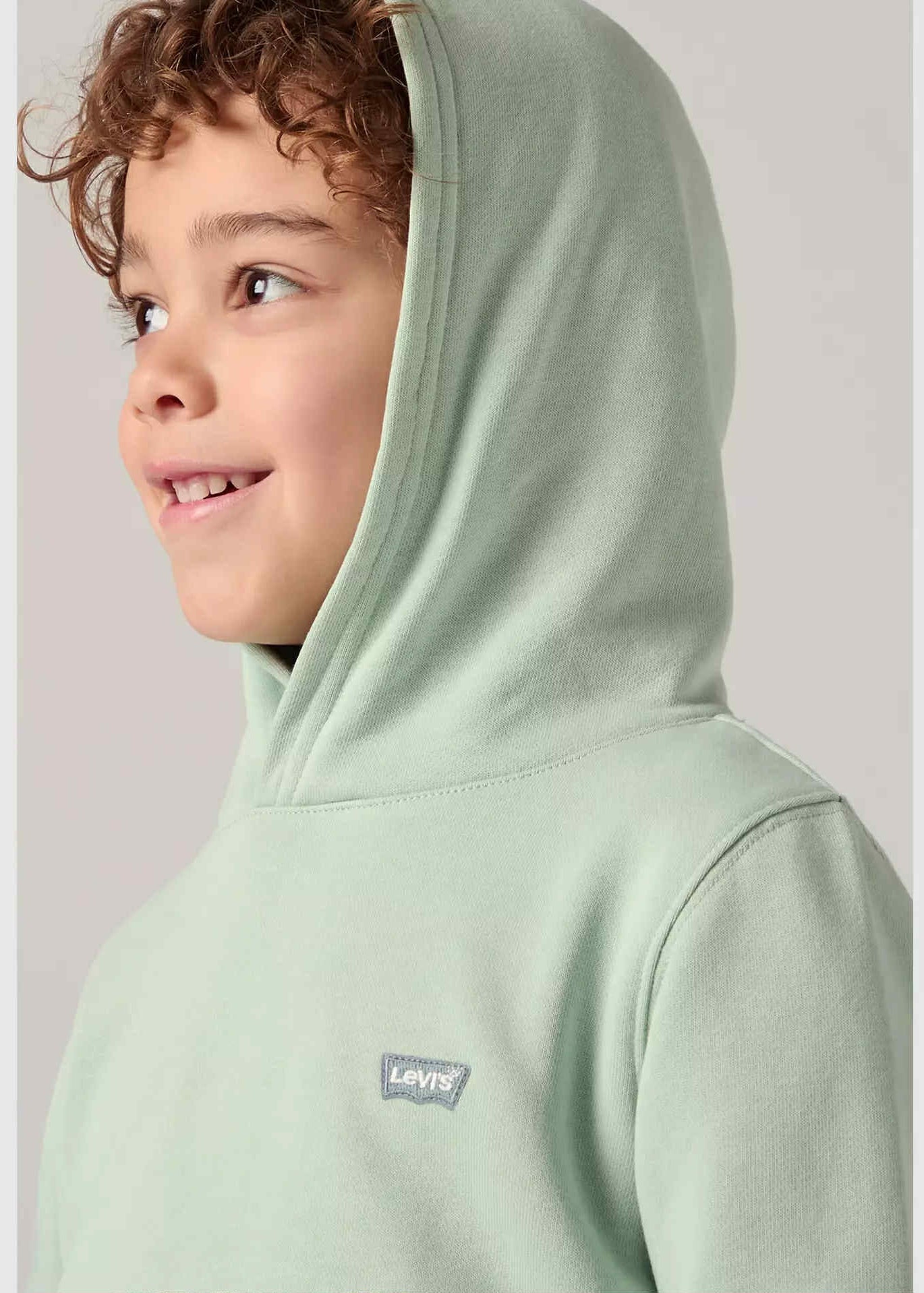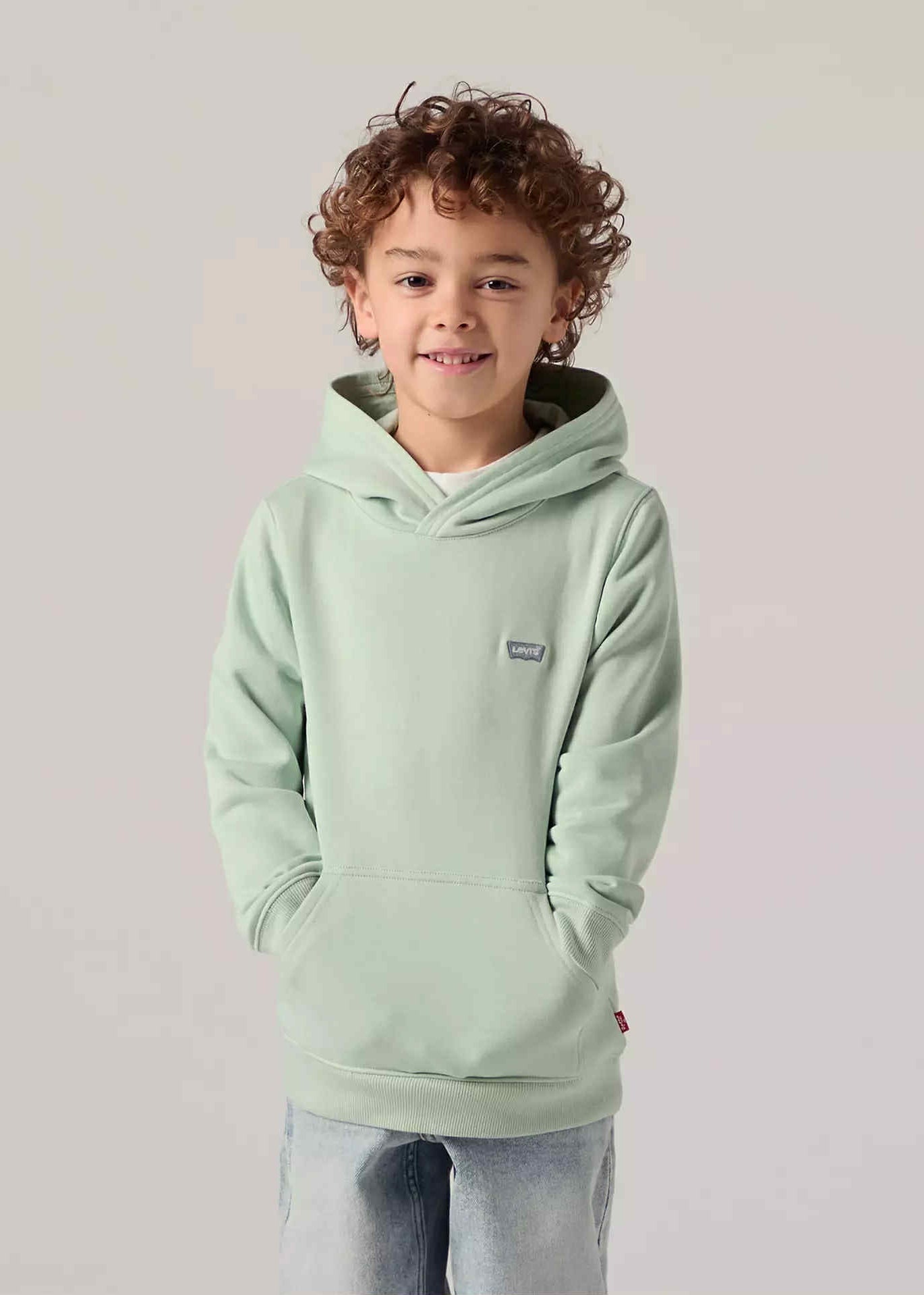 This Levi’s boys’ pullover hoodie is a comfortable everyday essential, perfect for casual wear and cooler days. Made from a soft cotton blend, it features a cosy hood and a classic kangaroo pocket. Finished in a fresh mint green shade with a subtle Levi’s Mini Batwing logo, it’s ideal for school, play, and relaxed outfits.