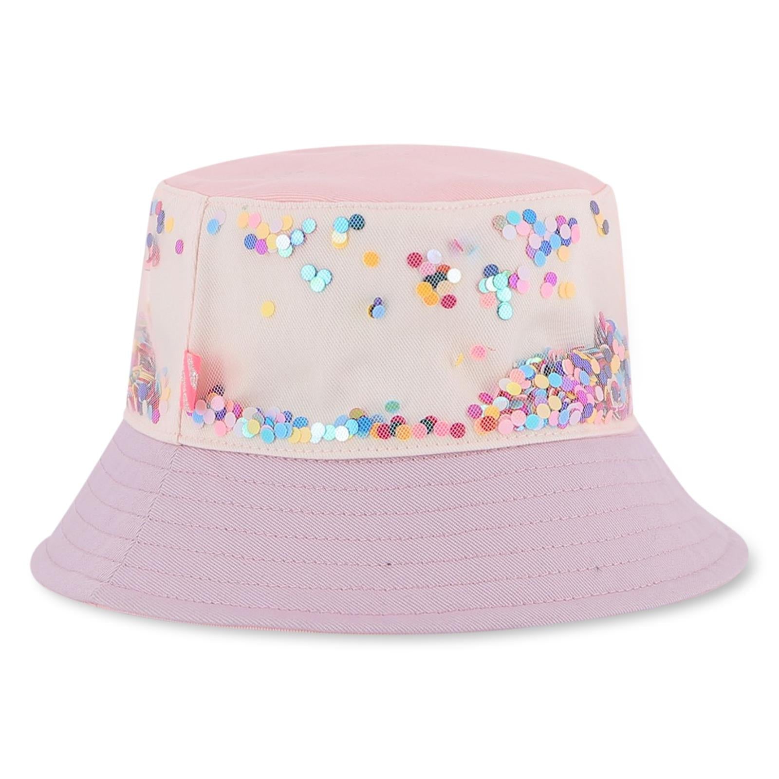 Girls Pink Glitter Bucket Hat with Heart Detail