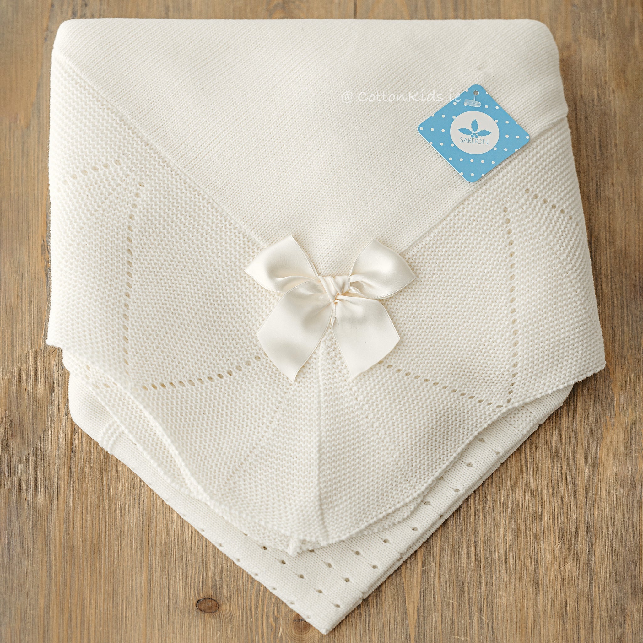 Introducing our beautiful White Knitted Christening Baby Blanket Shawl by SARDON. This elegant blanket, in a timeless white color, is perfect for both baby girls and boys. It is ideal for Christening ceremonies, special occasions, or as a thoughtful baby gift.